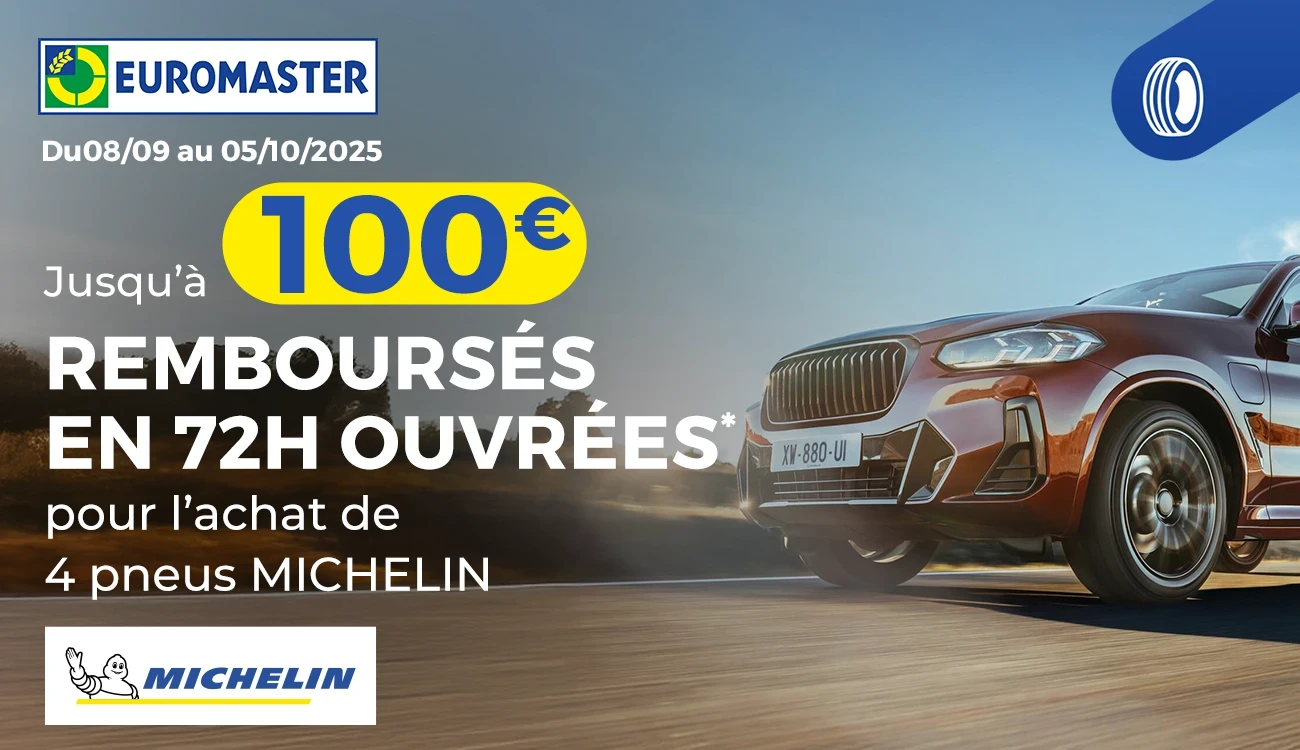 Jusqu'à 100€ remboursés en 72h ouvrées pour l'achat de 4 pneus Michelin.